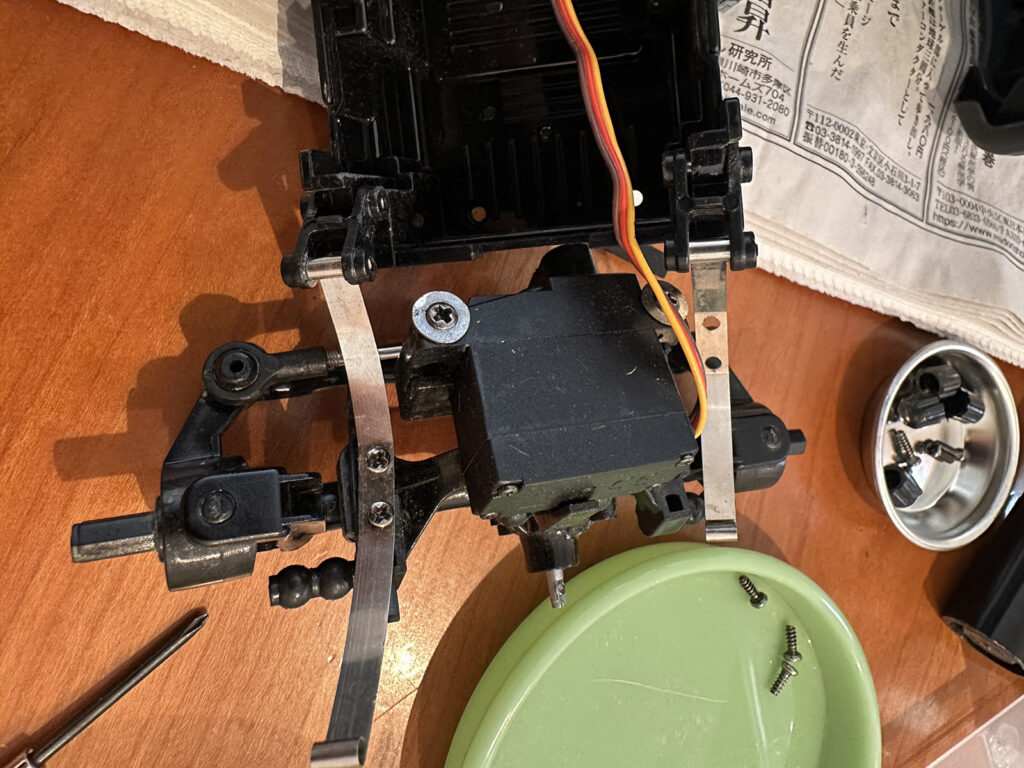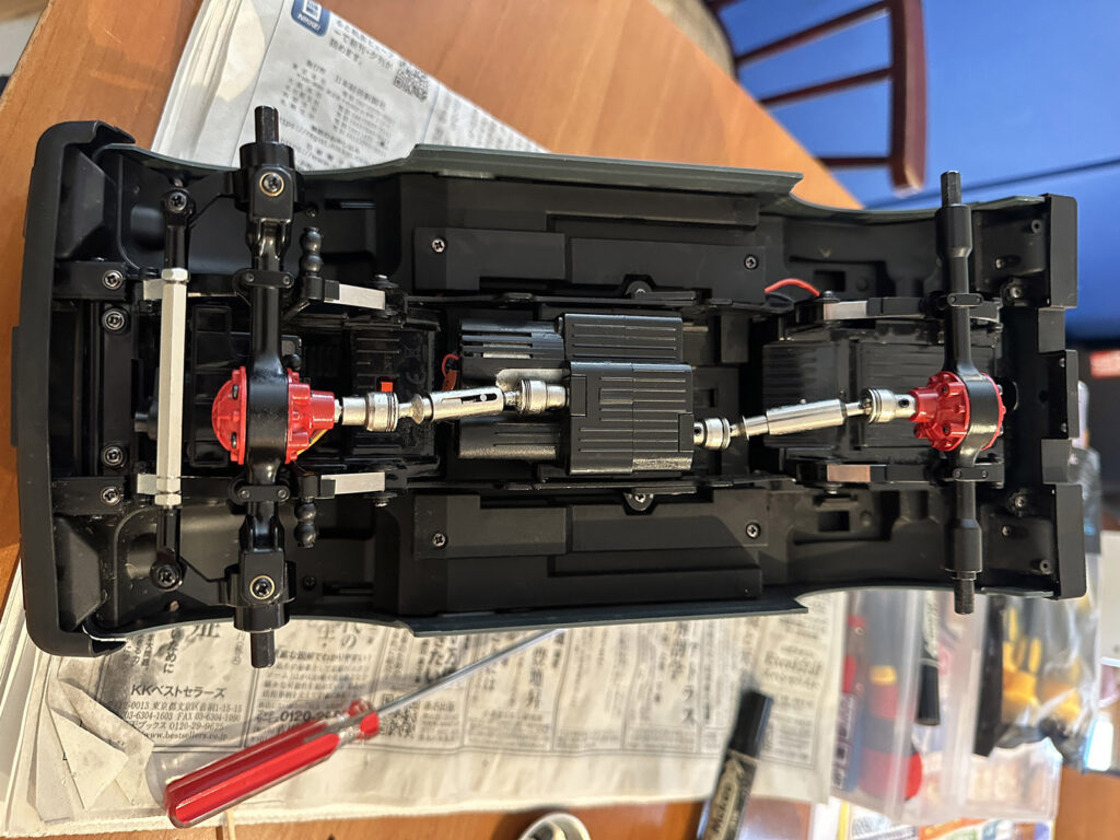 ちょっと時間ができたので、前々からやろうと思っていた、『WPL JAPAN スズキ ジムニー(JA11) 1/10🔗』の[メタルドライブシャフト]と[メタルデフ]にカスタマイズしました。WPL JAPANのYouTube見ながらだったので簡単でした。ただ1点サーボの取り付けの方法が、YouTubeと違っていたので、ちょっとだけ迷いました。カスタマイズしたあとの走行も問題なかったので、すんなり完成しました。