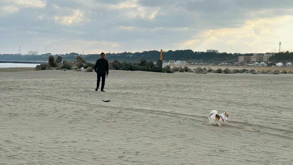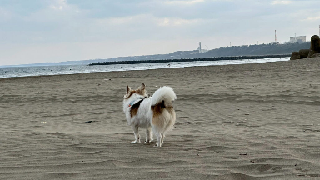 15:30過ぎに到着して、海辺を散歩しました。「ろん」は久しぶりにリードなしで楽しそうでした。
