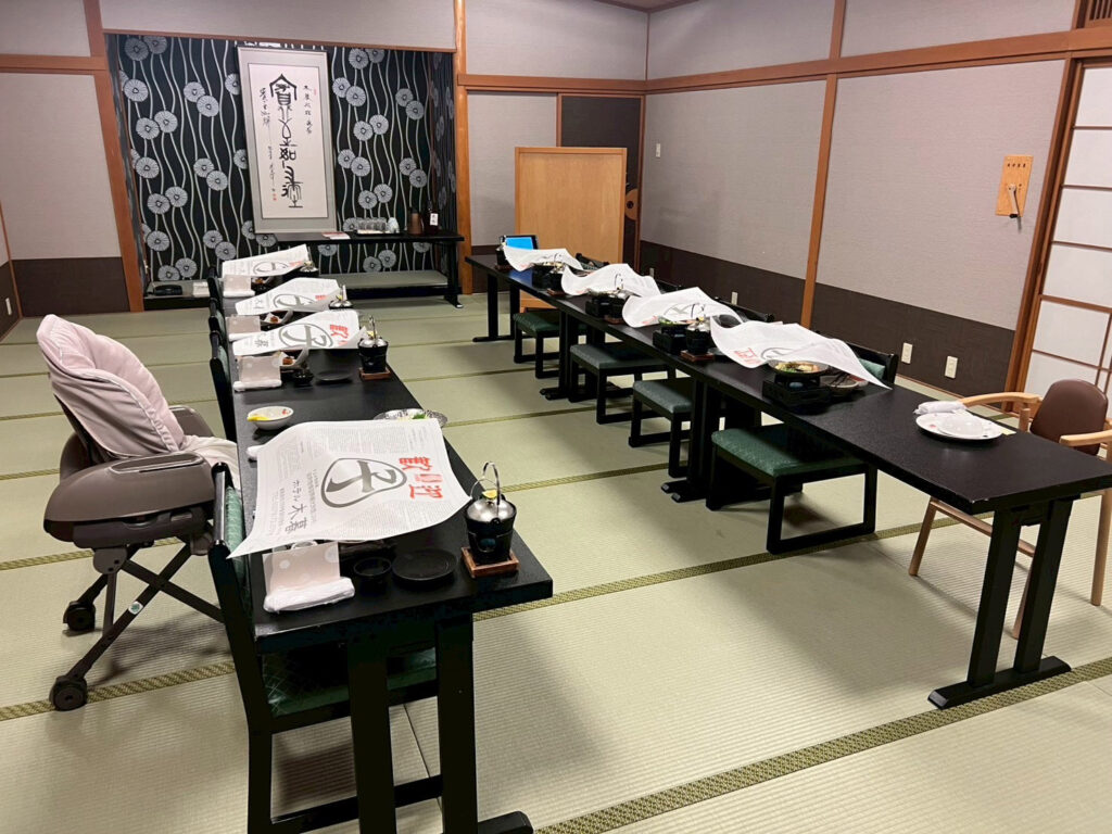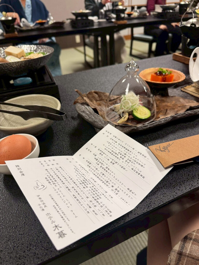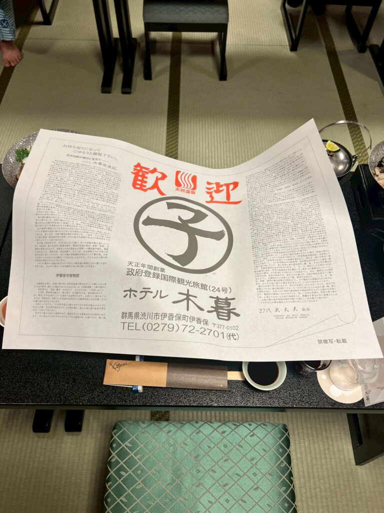 今回の宿は『ホテル小暮🔗』。2人の幼児がいるので露天風呂付の『山水亭🔗』の部屋をチョイス。とても良い部屋でした。私が泊まった部屋だけが、『和洋室🔗』で山側でした。他の家族の3部屋は街側で和室でした。残念ながら1室全体の写真が無かった。