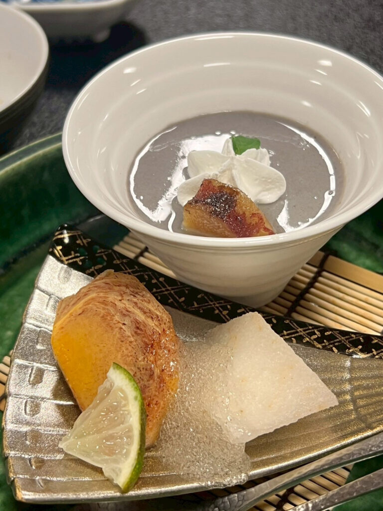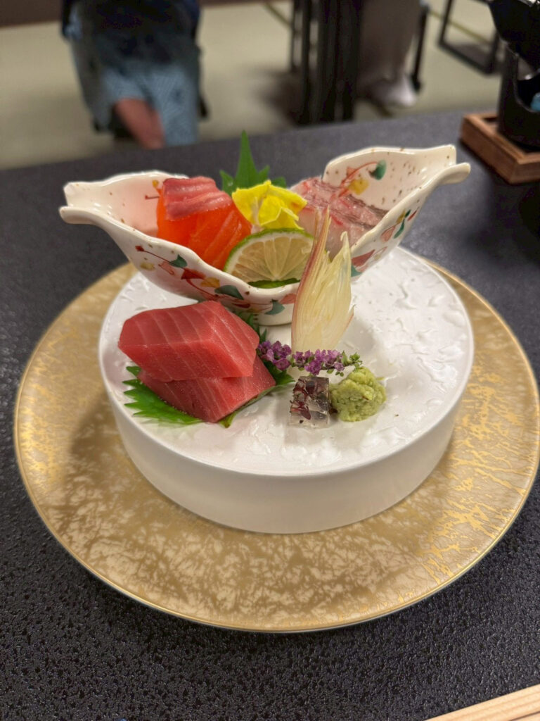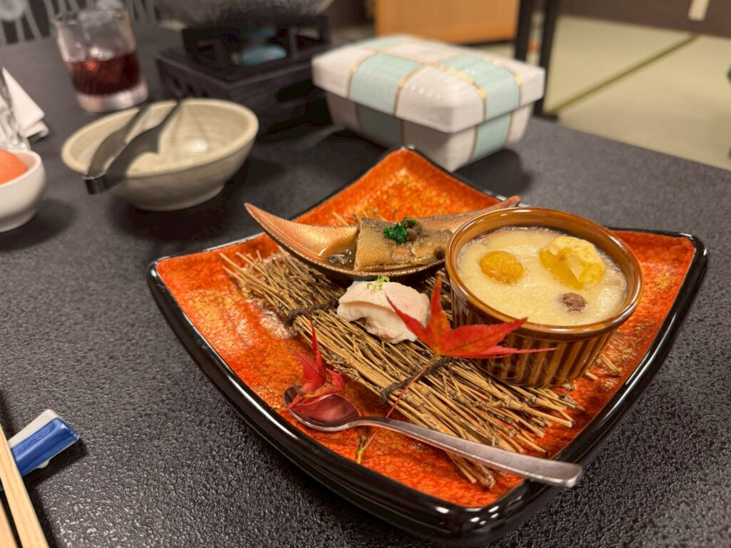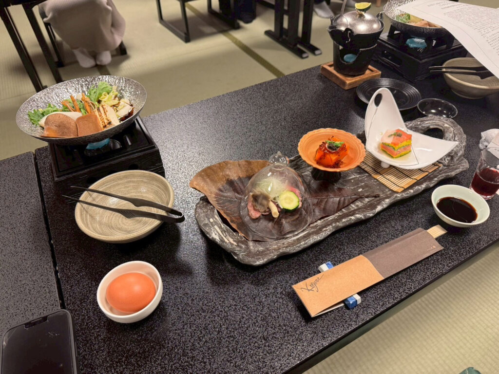 ホテルに戻てからは、温泉に浸かり夕食へ。『ホテル小暮の温泉🔗』は滅茶滅茶露天風呂が数多くありました。日替わりで男性と女性のお風呂が入れ替わり、忙しかったです。夕食は「風流亭 香風」所で頂きました。テーブル席で床は畳の個室でした。料理もとても美味しかったです。幼児用の夕食を頼もうと、事前に電話したのですが、幼児の食事は部屋代の%らしく、今回露天風呂付の部屋を予約したので、自動的に高い幼児の夕食になってしまう事がわかり、約2歳の孫には、別注でうどんとシャーベットを頼みました。