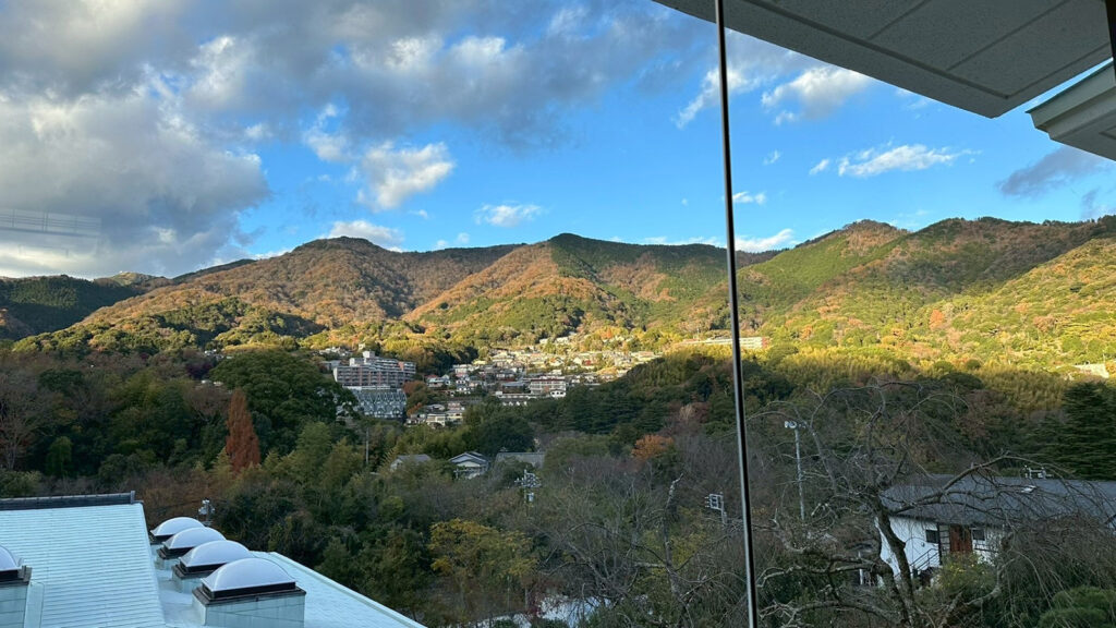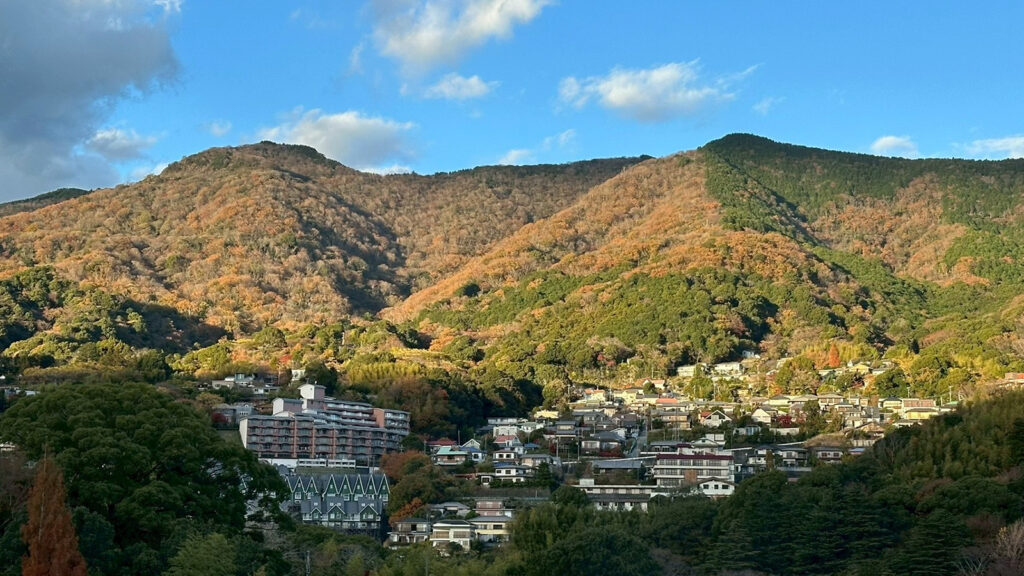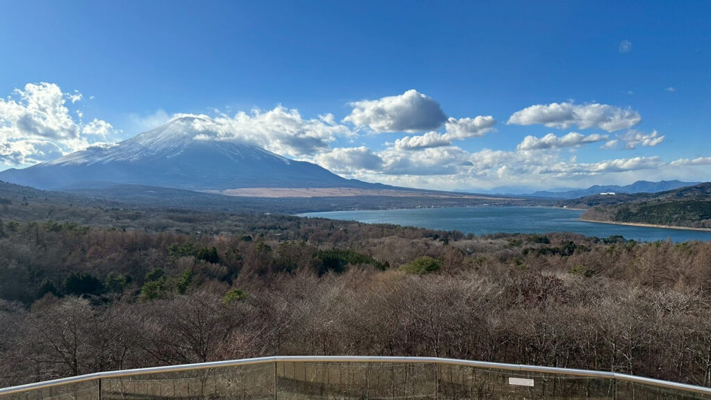 夕飯食べて温泉入って一杯やって今夜も早く寝ます。翌朝は朝食を食べてチェックアウトちょっと前に出発しました。帰りはどうしようか?迷いましたが、箱根を通って良く行く仙石原の蕎麦屋『穂し乃庵🔗』でお昼を済ませ、『山中湖パノラマ台🔗』に寄りました。久しぶり来たのですが、綺麗に整備されていて平日にも関わらず7台くらいしか停められない駐車場は一杯でした。昔はただのちょっとした原っぱで穴場だったのですが観光地のようになっていました。