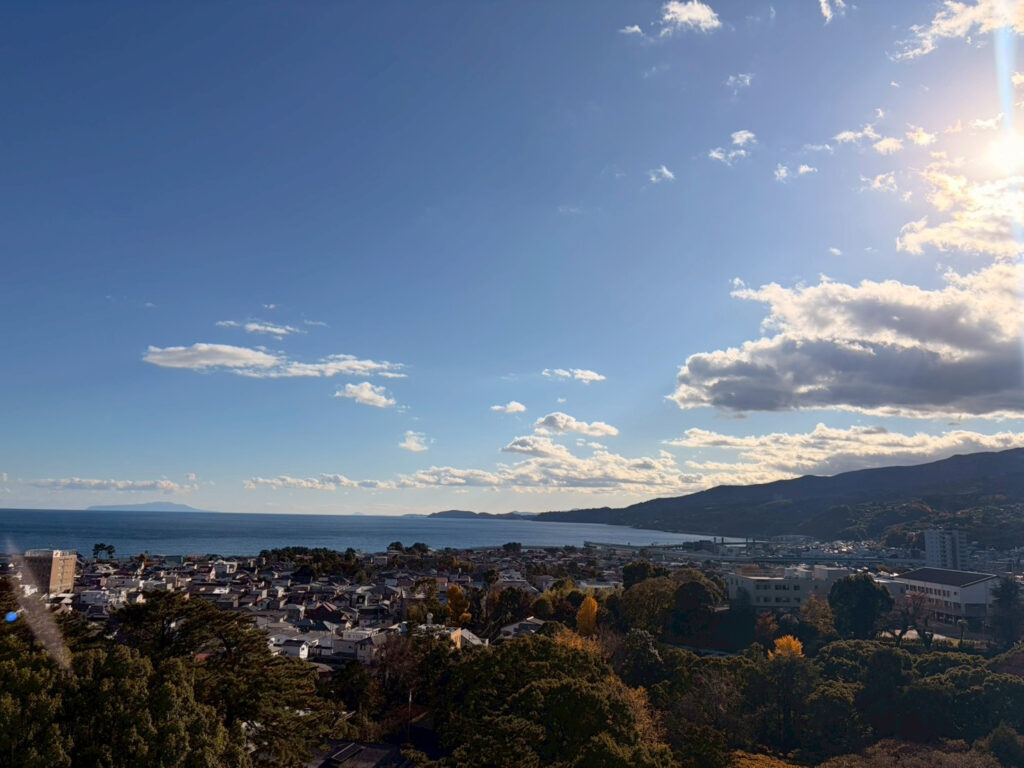 通りかかった駐車場に停めて、歩いて小田原城に向かいました。(10分くらい?)小田原城に入場して天守閣?から外を眺めました。天守閣まで510円/人でした。しんどかったのはエレベータは無く、天守閣まで歩いて上がりました。小田原城の後は宿泊先の湯河原の保養所まで、娘に運転してもらい向かいました。