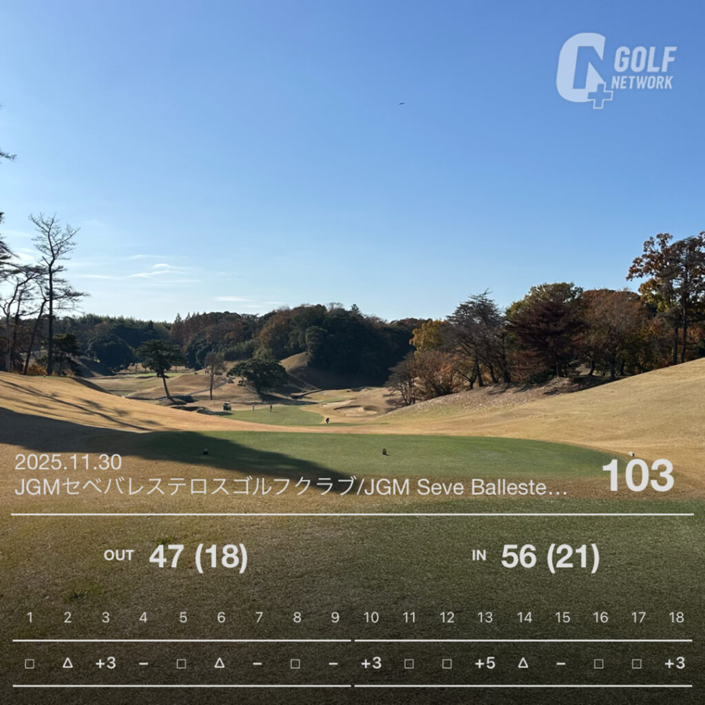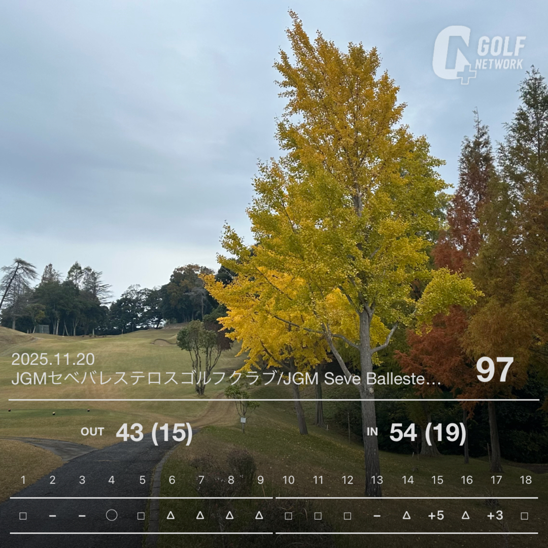 8月の月例会で5位に入賞できたので、今回もと思いプレイ前はやる気満々だったが・・今回は月例会なので、白ティーからアウトスタート。出だしいきなり引っ掛けから始まりダブルボギースタート。No3では、池に入れてトリプルボギー。やばいな~っと思ったが何とか前半は47点。昼に焼酎ソーダワ割と天ぷらそばを食べてから、後半頑張ろうと思ってスタートしたら、やっぱり引っ掛けこのホールも池に入れてトリプルボギースタート。極めつけはNo13のショートホール。右に抜けたボールはOBと思いきや、根っこの間に・・そこで無理に打ったショットは、根っこに当たって後ろに飛んでOB。そこから打ち直しでフェアウェイに戻し6オン2パットで8点に・・終わった。その後もショットは安定せず後半は56点。なんてこったいなラウンドになってしまいました。次回ガンバリたいと思うが、12月はダイヤに行くので不参加。1月からは股関節の手術をする予定なのでしばらくゴルフはできない予定だ・・