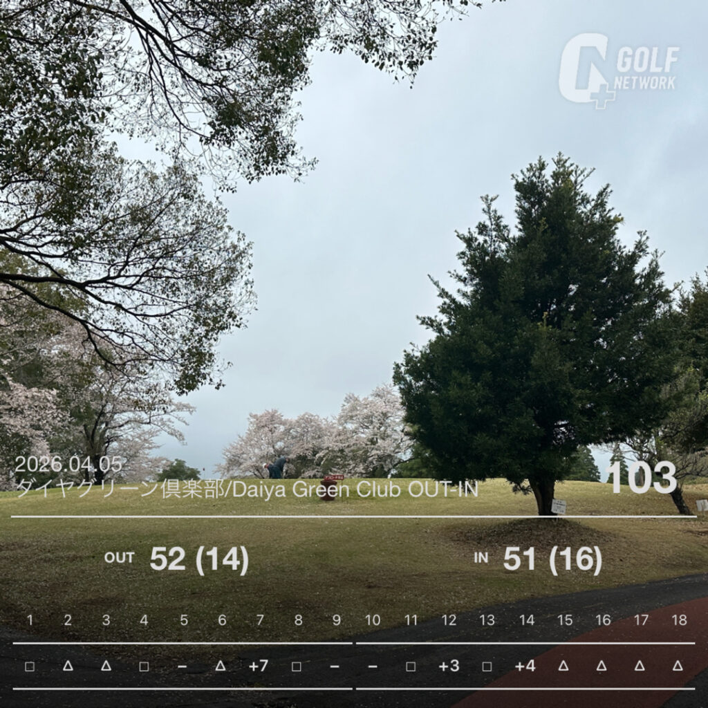 今年2回目のゴルフは、メンバーコースのダイヤグリーン倶楽部の研修会です。何とか雨にも降られずプレイできました。メンバーはKさん、Nさん、Nさん。インスタートの黒ティーからグリーンはA4でした。No10からスタートでなんとパースタート。4オン1パットで4打目がたまたまピン近くに寄っただけですが・・その後はやっぱり引っ掛けの嵐でNo14まで11オーバ、その後なんとかボギーでしのいで、午後へ。午後も何とかNo6までは7オーバでボギーペースに戻ればと・・その矢先、No7の洗礼を受けました。なんとドライバーのティーショットを左に引っ掛けOB。これを2回繰り返し、上がってみれば、7オーバの11点。がっくりでした・・でも後半はミドルアイアンも少し当たるようになりました。来週はとあるコンペに参加予定なので頑張りたいと思います。