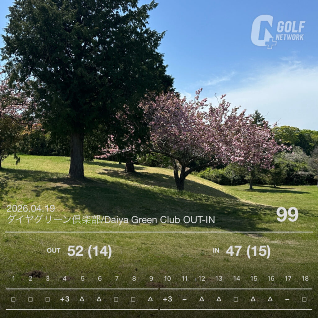先日のコンペで優勝したもんだから、もしかしたら・・と挑んだダイヤ月例会。アウトスタートの青ティーから、メンバーはいつものMさん、Iさん、Aさん。グリーンはA4。いきなりスタートホールは、3Wで慎重に打ったつもりが、2発連続左へ引っ掛け・・OBも覚悟したが何とか生きていて出すだけ・・上がってみればダブルボギースタート。そこからNo4まで引っ掛けのオンパレードで9オーバ。トホホな状況でした。この日は色々調整して、午後は何とか47で3桁を阻止する事が出来ました。ちょっと不甲斐ない結果に悲しくなったが、今月はリハビリ月間として開き直る事にしました。2日後はプライベートでくる予定ですが、どうなる事やら・・
